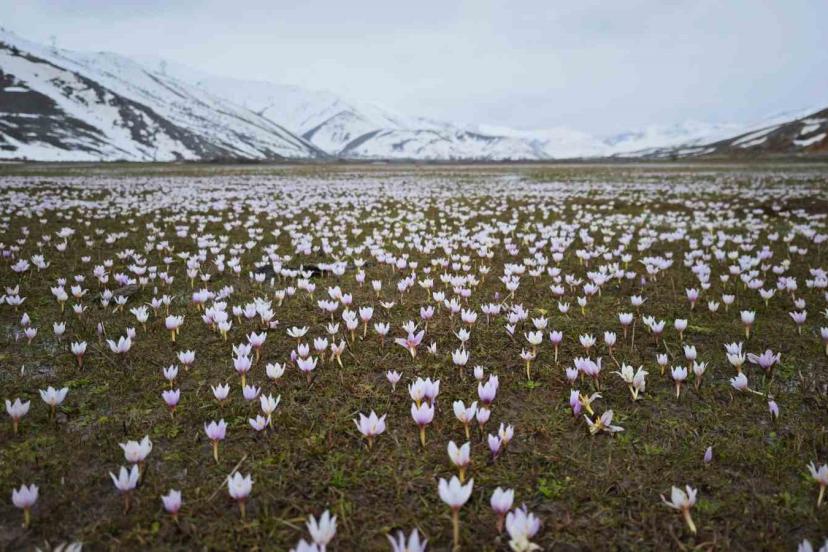 Bitlis’in Tatvan ilçesindeki Güzeldere Vadisi, açan çiğdem çiçekleriyle beyaz ve pembeye bürünerek güzel görüntüler oluşturuyor.