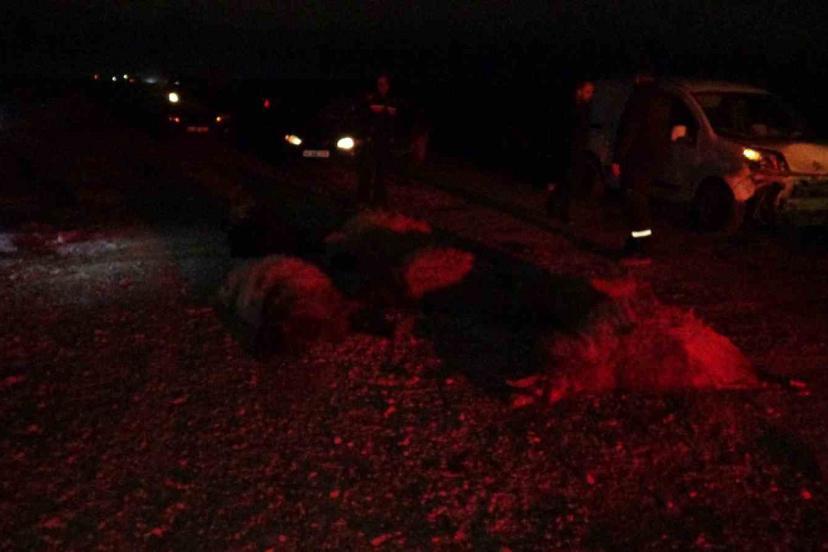 Malatya’da hafif ticari aracın küçükbaş hayvan sürüsüne çarptığı kazada sürücü yaralanırken, 10’dan fazla koyun telef oldu.