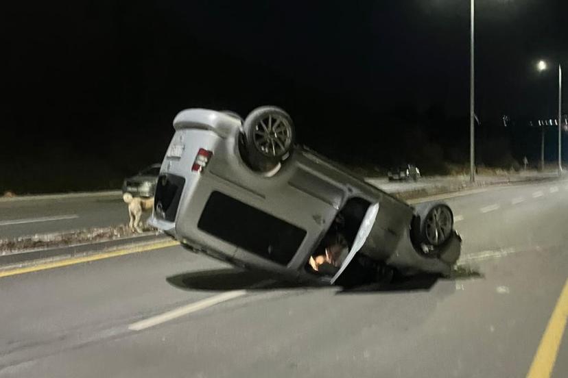 Adıyaman’da, kontrolden çıkan bir hafif ticari araç takla atarak ters döndü.