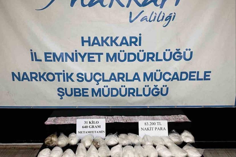 Hakkari’de 60 parça hâlinde toplam 31 kilo 640 gram metamfetamin maddesi ele geçirildi.