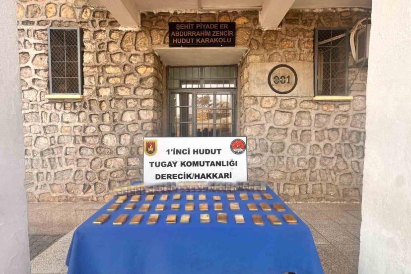 Hakkari’de güvenlik güçleri tarafından hudut hattında icra edilen faaliyetlerde 36 kilo 18 gram sarma altın ele geçirildi. Milli Savunma Bakanlığının sosyal medya hesabından yapılan paylaşımda, "Hudut birliklerimiz, keşif, gözetleme ve devriye faaliyetlerini 7 gün 24 saat aralıksız sürdürüyor. Son olarak Hakkâri hudut hattında yapılan arama tarama faaliyetinde 36 kilo 18 gram sarma altın ile 51 paket sigara ele geçirildi. Ele geçirilen malzemeler Derecik İlçe Jandarma Komutanlığına teslim edildi" denildi.