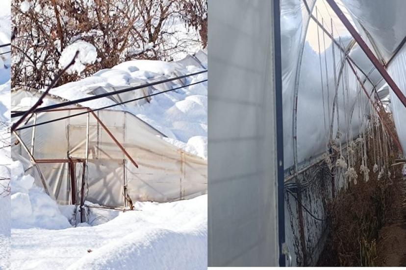 Hakkari-Çukurca karayolu üzerinde bulunan Çimenli köyünde, yoğun kar yağışı nedeniyle seralar çöktü.