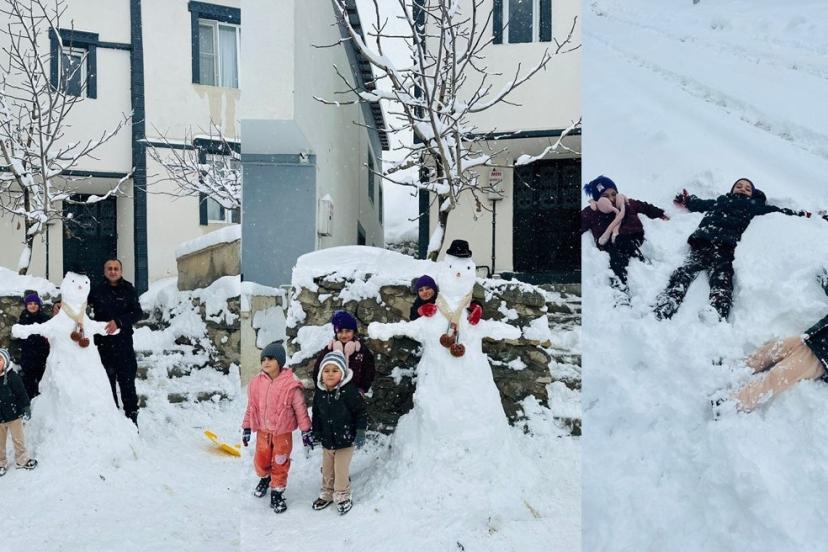 Hakkari’de etkili olan kar yağışının ardından kardan adam yapan çocuklar günün keyfini çıkardı.