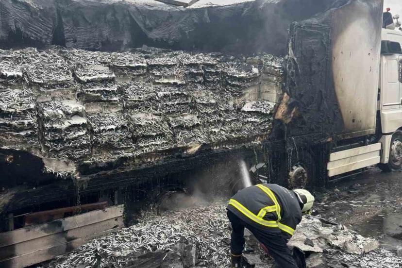 Hamsi yüklü tır alevlere teslim oldu: Dorse kullanılamaz hale geldi