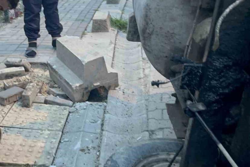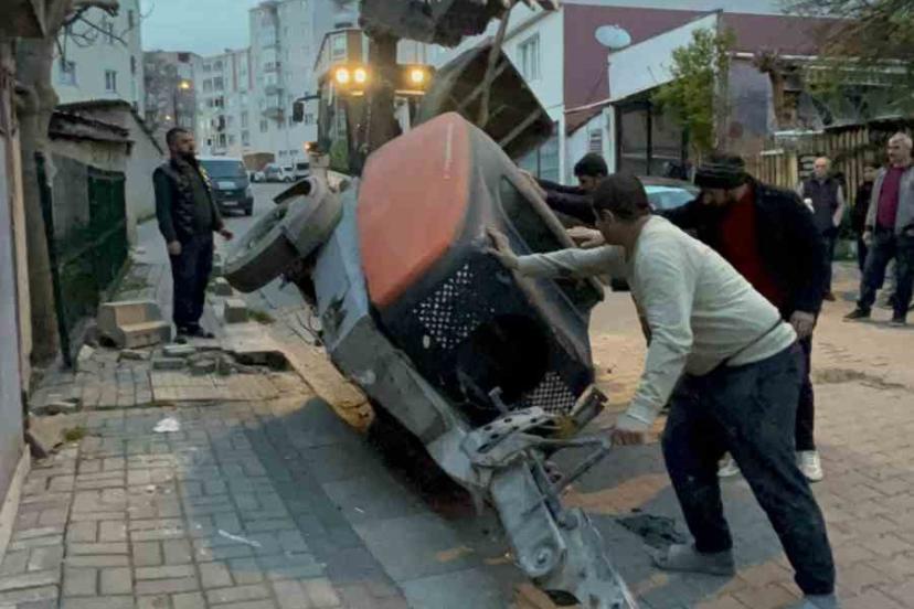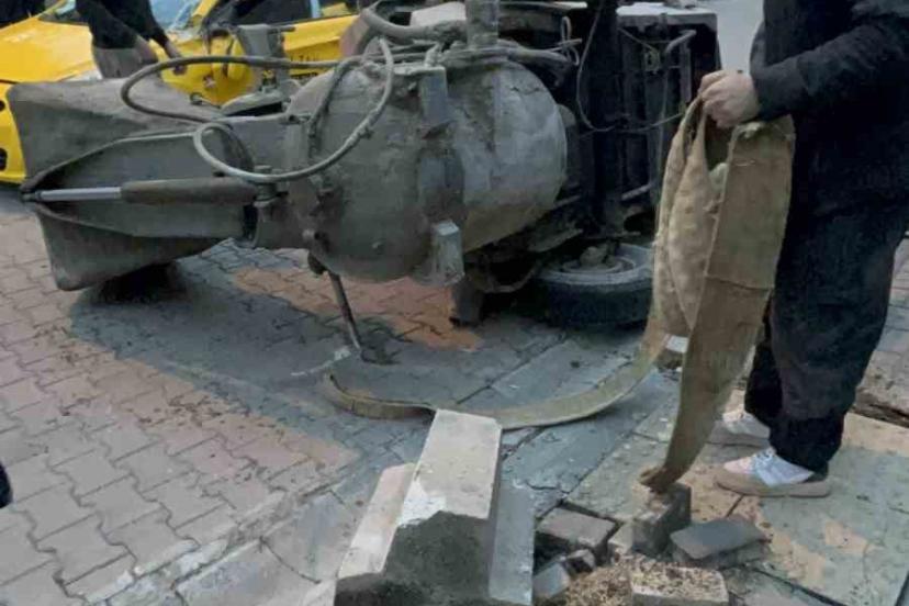 Harç karma makinesi, ticari taksinin üzerine devrildi