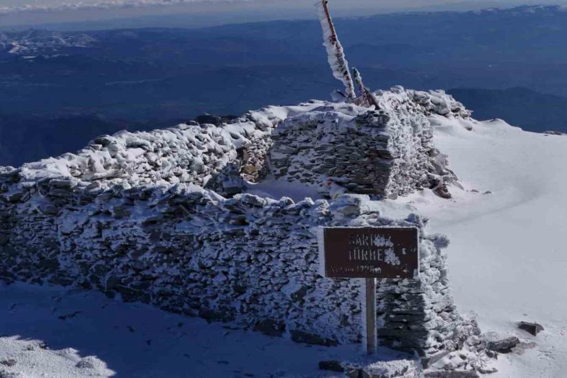 Balıkesir’de beyaza bürünen Kazdağları’nın zirvesi dronla havadan görüntülendi.