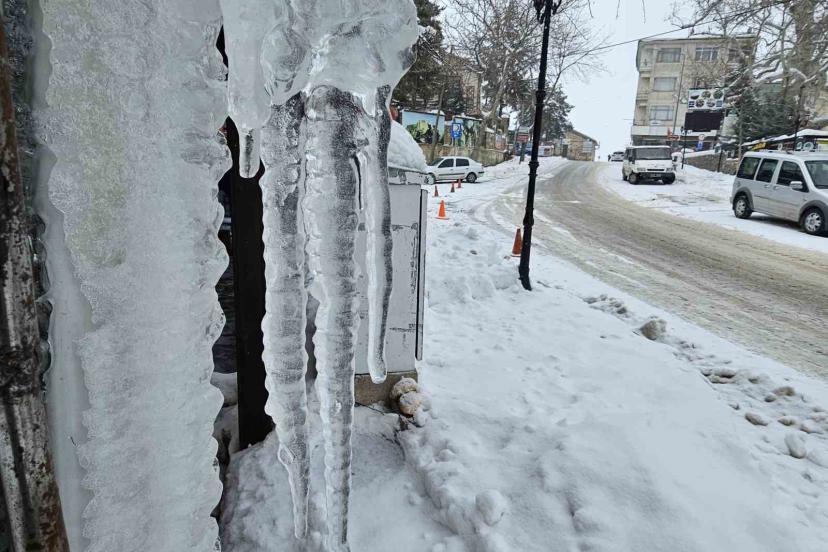 Elazığ’da kar yağışı ve soğuk hava etkisini sürdürüyor. Gece boyunca termometre eksi 10 dereceye kadar düşmeye başladı. Etkili olan don nedeniyle birçok evin çatısında yaklaşık bir metre uzunluğunda buz sarkıtları oluştu. Oluşan buz sarkıtları, hem görsel bir manzara oluşturdu hem de vatandaşlar için tehlike arz etti.