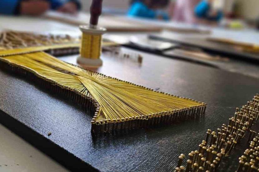 Hasköy Gençlik ve Spor Merkezi’nde haftanın 5 günü devam eden kursta, katılımcılar çivi ve tel kullanarak çeşitli desenleri tabloya dönüştürüyor. El emeğiyle ortaya çıkarılan çalışmalar, kursiyerlerin hem sosyal vakit geçirmesine hem de ekonomik kazanç elde etmesine imkân sunuyor.