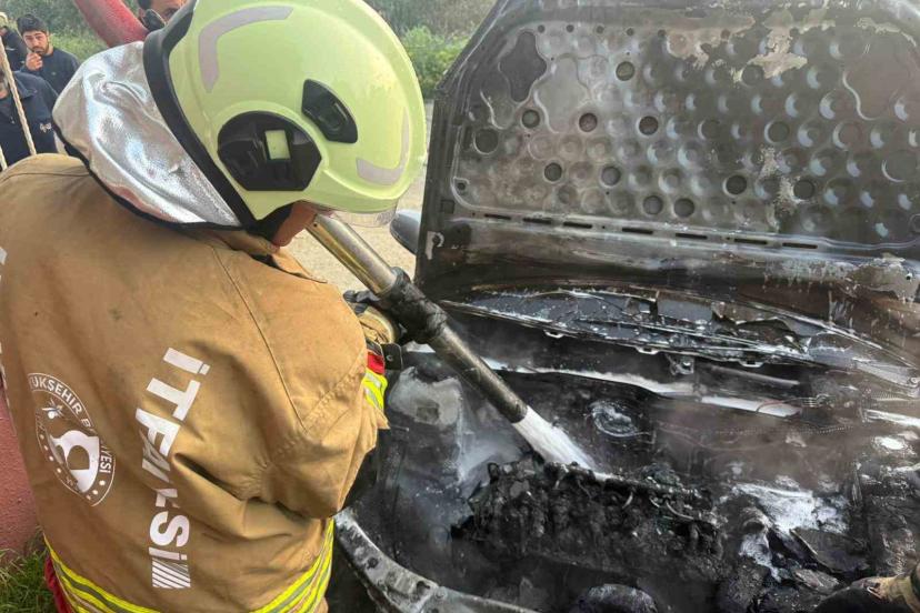Hatay’da park halindeyken alevlere teslim olan otomobilde çıkan yangın söndürüldü.
