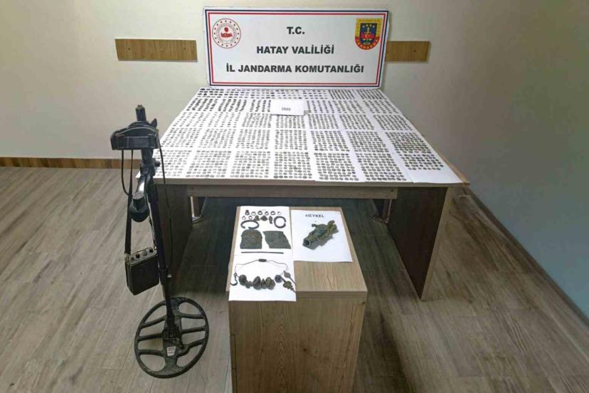 Hatay İl Jandarma Komutanlığı ekiplerince 18 Nisan tarihinde Antakya ilçesi Karlısu Mahallesi’nde A.A., S.G. ve A.A. isimli şahısların ikametlerinde yapılan aramada bin 988 adet çeşitli dönemlere ait olduğu değerlendirilen sikke,17 adet tarihi eser niteliği taşıyan obje, Roma dönemine ait olduğu değerlendirilen 1 adet heykel,1 adet dedektör ele geçirildi.