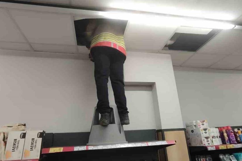 Hatay’da marketin havalandırma boşluğunda mahsur kalan kedi itfaiye ekiplerince kurtarıldı.