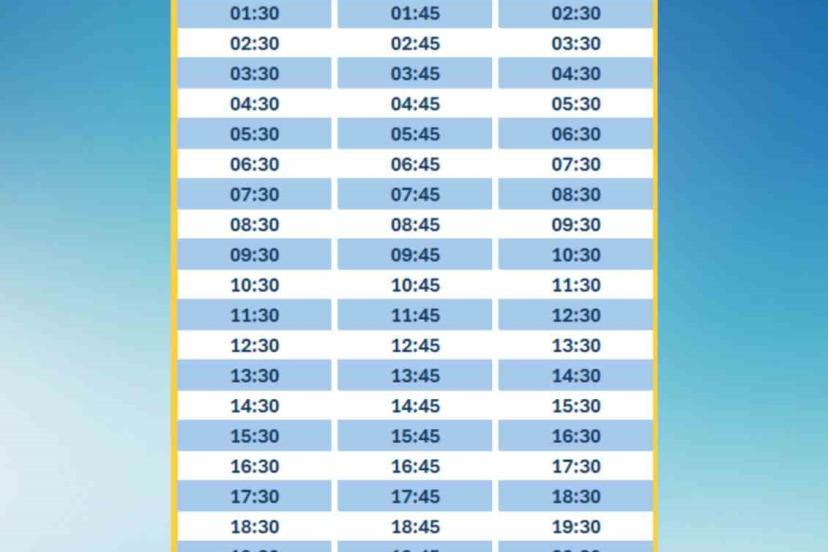 "Kalkış (Fuar Alanı): 00.30, 01.30, 02.30, 03.30, 04.30, 05.30, 06.30, 07.30, 08.30, 09.30, 10.30, 11.30, 12.30, 13.30, 14.30, 15.30, 16.30, 17.30, 18.30, 19.30, 20.30, 21.30, 22.30, 23.30