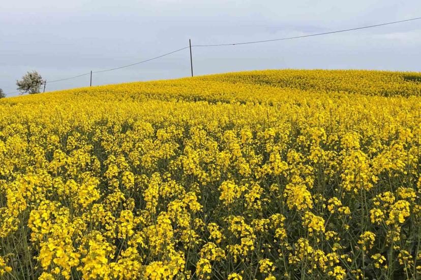 İlçenin bereketli topraklarına ekilen ayçiçeğine alternatif olarak ekilen ve bitkisel yağ üretiminde kullanılan kanola bitkisi çiçek açmaya başladı.
