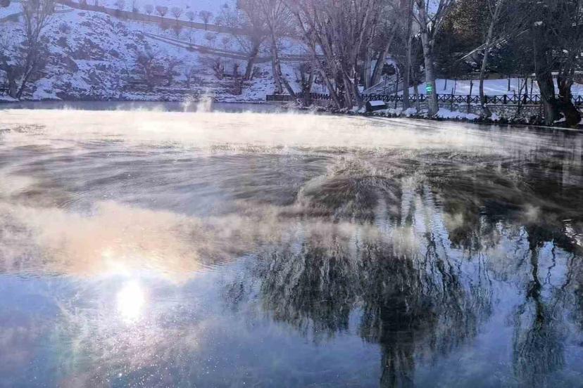 Sibirya soğuklarının yaşandığı Sivas’ta suya dair ne varsa dondu, donmayan tek göl, bozkırın nazar boncuğu Gökpınar gölü oldu.