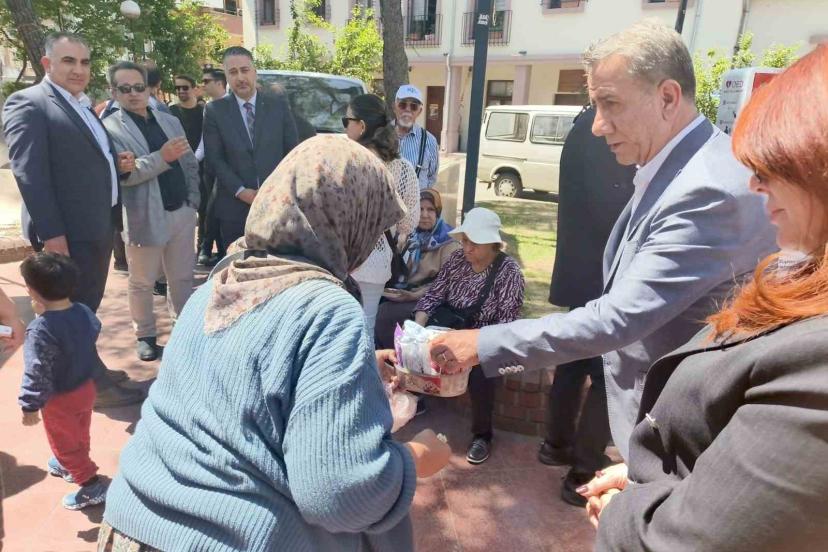 Lokma hayrının da gerçekleştirildiği programda bölgede yaklaşık 15 yıldır işportacılık yapan 65 yaşlarındaki Selma Sayar, adeta meslekte ustalığını konuşturdu. Müşteri olarak gördüğü Efeler Belediye Başkanı Anıl Yetişkin’in yanına sokulan Selma Teyze, hiç kimseye dinlemeden işine odaklanıp Başkan’a yara bandı ve mendil satmayı başardı.