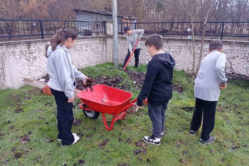 Kütahya’nın Hisarcık ilçesinde bulunan Anadolu İmam Hatip Lisesi’nde (AİHL) okul bahçesindeki yapraklar ve biçilmiş otlardan organik gübre üretimi için çalışma başlatıldı.