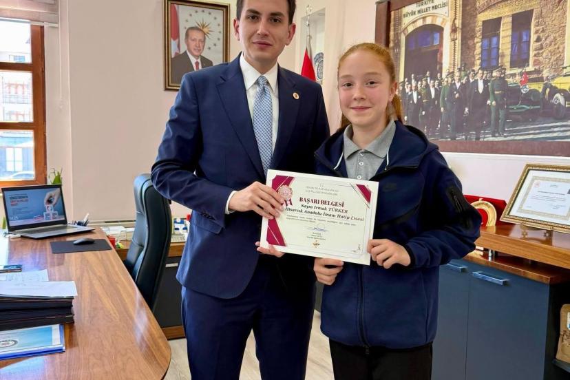 Kaymakam Atam, 7. sınıf öğrencisi Irmak Türker’i makamında kabul ederek başarısından dolayı tebrik etti. Ziyarette, genç sporcuya başarı belgesi ve çeşitli hediyeler takdim edildi.
