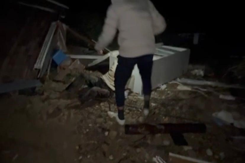 Hortumun savurduğu konteynerdeki yaralı adamın bulunduğu anların görüntüsü çıktı
