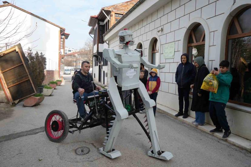 Kastamonu’da hayalini gerçekleştiren bir vatandaş, yürüyen ve arkasında insan taşıyabilen robot tasarladı.