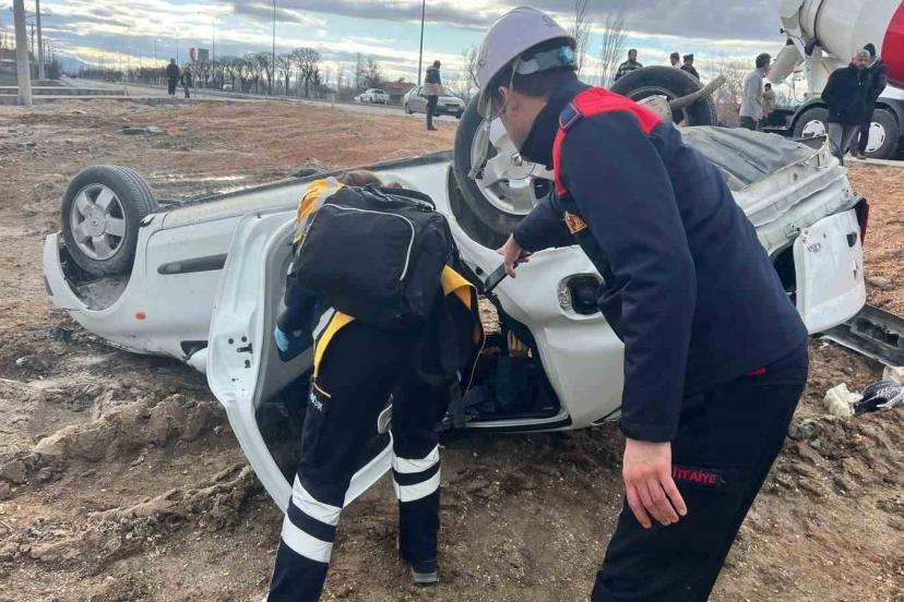 Afyonkarahisar’ın meydana gelen trafik kazasında, direksiyon hakimiyetini kaybeden otomobil takla atarak şarampole devrildi.