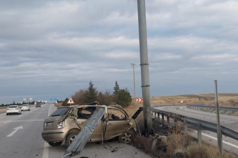 Afyonkarahisar’da önce bariyerlere ardından beton direğe çarpan otomobilin hurdaya döndüğü kazada sürücü yaralandı.