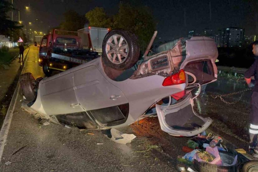 Samsun’un Canik ilçesinde kontrolden çıkan otomobilin takla attığı kazada araç hurdaya döndü.
