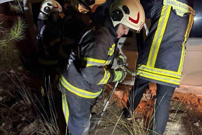 Denizli’de gece saatlerinde direksiyon hakimiyetini kaybettiği otomobil yoldan çıkarak ağaca çarparak durabildi.