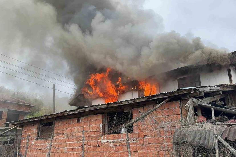 İki katlı ev alev alev yandı