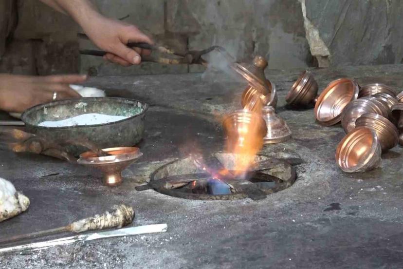 Babalarından miras kalan ocakta, zamanın aşındıramadığı el emeğiyle bakır mutfak eşyalarını bin bir emek ve zahmetle kalaylayan kardeşler, baba mesleğini yaşatmaya çalışıyor.