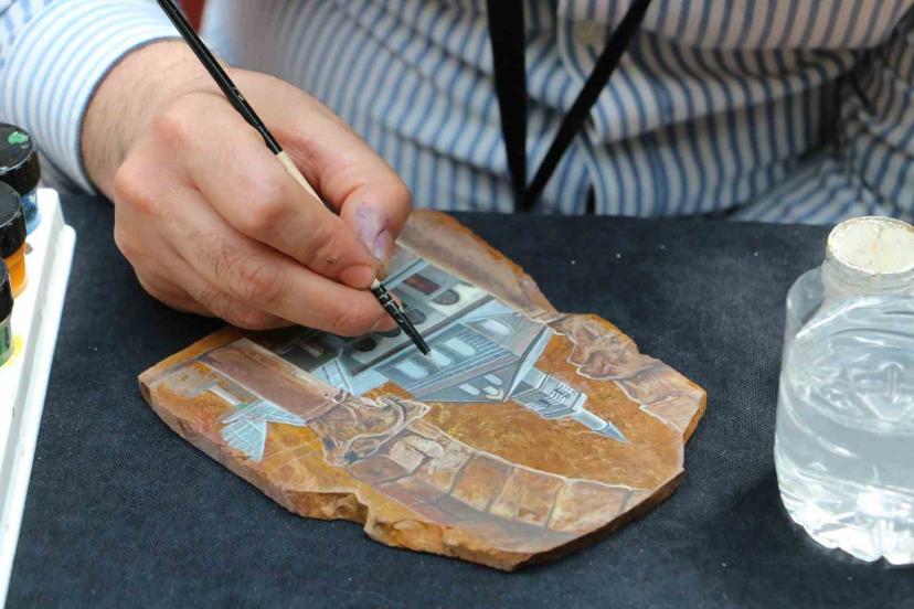Diyarbakır Olgunlaşma Enstitüsünde resim öğretmeni görevini yürüten Songül Toköz Özer ise kendisinin ve 3 usta arkadaşının çalışmaları gerçekleştirdiğini söyledi. Özer, "Toplamda 81 eser bulunuyor ve her birinde Türkiye’nin 81 ilinden seçilen farklı tarihi yapılar, özel taşlar üzerine aktarıldı. Kullandığımız taşlar doğada bulunan ancak özel olarak işlenen taşlardan oluşuyor. Nitelikli taşlar, taş atölyemizde işlenip hazırlanarak kalıp haline getirildi ve ardından sanatsal çalışmalara dönüştürülmek üzere bize teslim edildi" diye konuştu.