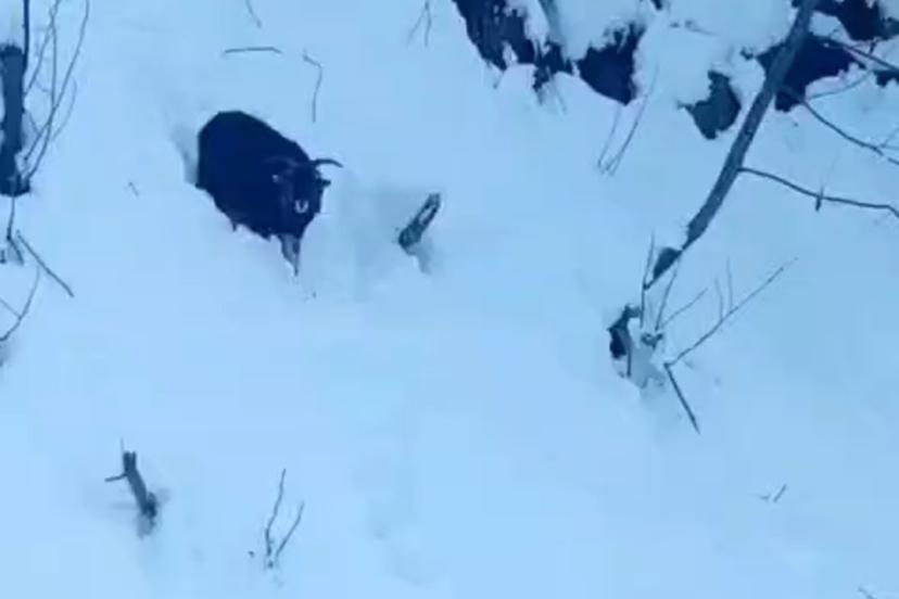 İş makinesi operatörü karda kaybolan keçiyi sahiplerine ulaştırdı
