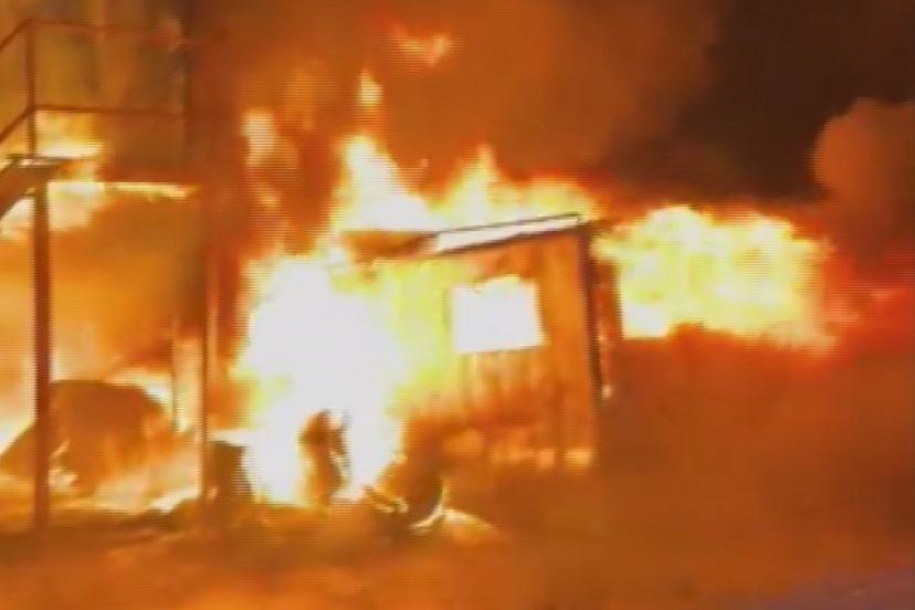 İşçilerin kaldığı konteyner yatakhane alevlere teslim oldu