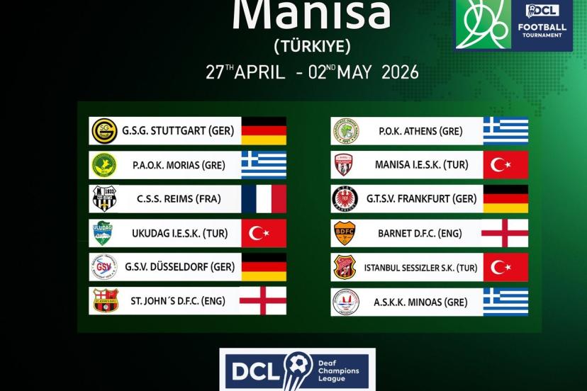Avrupa’nın en önemli işitme engelliler futbol organizasyonlarından biri olan Deaf Champions League (DCL) - Avrupa İşitme Engelliler Şampiyonlar Ligi, 27 Nisan - 2 Mayıs 2026 tarihleri arasında ilk kez Türkiye’de ve Manisa’da gerçekleştirilecek.