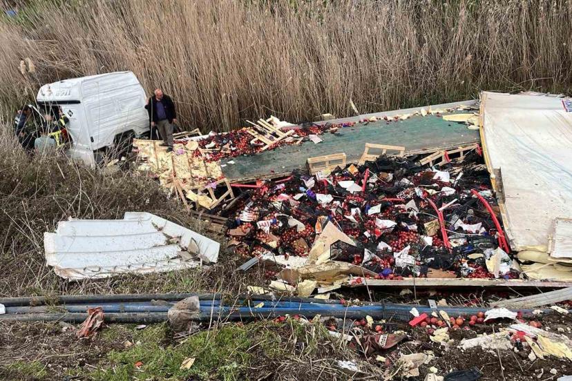 Isparta’da elma yüklü çekici kanala devrildi: 1 yaralı