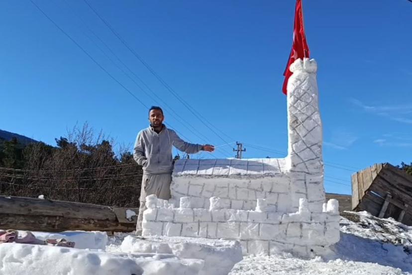 Sivas’ın ücra köyünde Kız kulesi karşısında çay içmek isteyen çocuklar, hayallerini kardan yaptıkları Kız kulesi ile gerçekleştirdi.