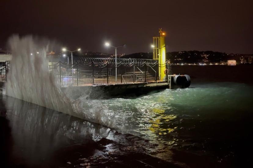 İstanbul’da kuvvetli rüzgarın etkisiyle sahil kesimlerinde yüksek dalgalar oluştu.