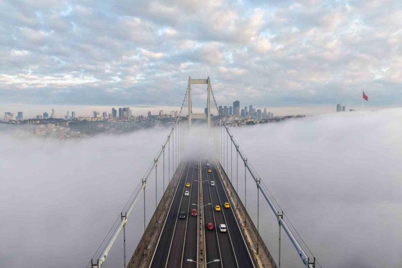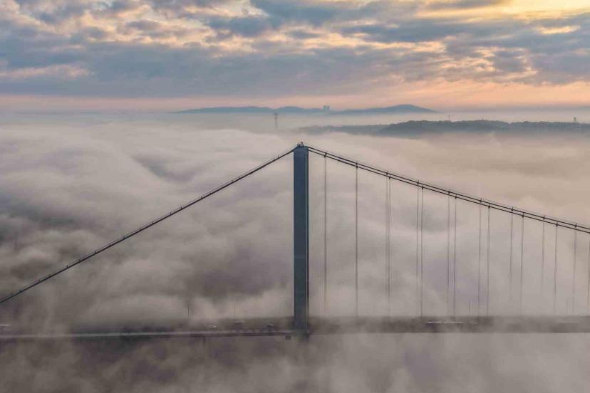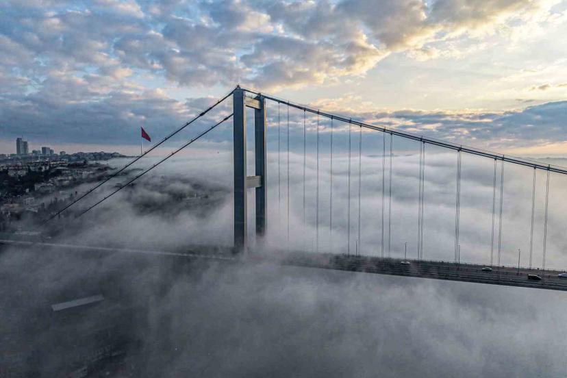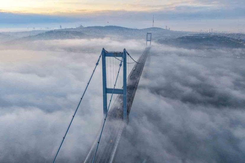 İstanbul’da sabah saatlerinde etkili olan yoğun sis, 15 Temmuz Şehitler Köprüsü üzerinde mest eden görüntüler oluşturdu. Gün doğumuyla birlikte sisin arasından yükselen köprü silueti görenleri mest etti.