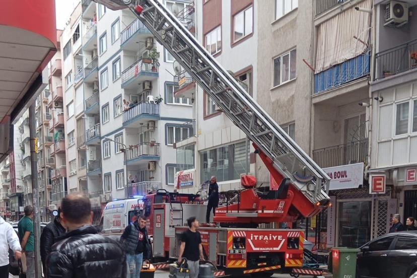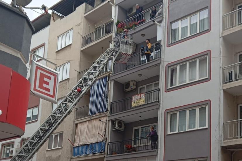 Aydın’ın Efeler ilçesinde evinde düşerek ayağını kıran ve kilosu sebebiyle merdivenlerden indirilemeyen genç, itfaiyenin asansörlü merdiveniyle balkondan indirilmek istendi. "Korkarım" diyerek asansörlü merdiven ile inmek istemeyen genç, kırık ayağıyla 4 katlı apartmandan inerek ambulansa ulaştırıldı.