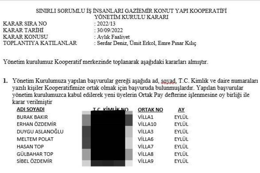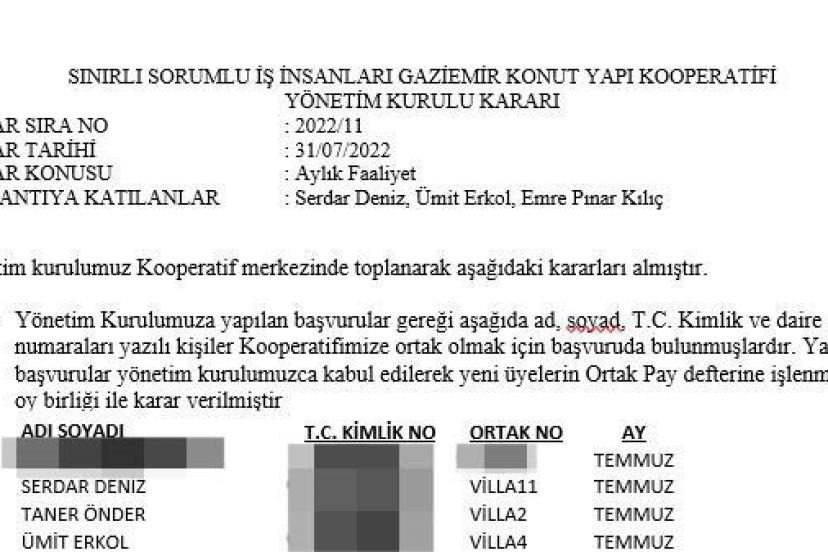 Dilekçedeki en dikkat çekici iddia ise kooperatif ortaklarına bilgi verilmeden projeye 11 adet villa eklenmesi oldu. Bu villaların kooperatif yönetimi ve yakın çevresindeki isimlere düşük bedellerle tahsis edildiği iddia edildi. Kooperatif karar defterindeki bazı sayfaların boş bırakıldığı ve kararların geçmişe dönük şekilde sonradan oluşturulduğu da iddialar arasında yer aldı.