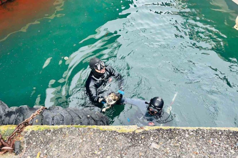 İzmir Büyükşehir Belediyesi İtfaiye Dairesi Başkanlığı ekipleri, Karşıyaka Vapur İskelesi’nin altında kolonlar arasında sıkış...