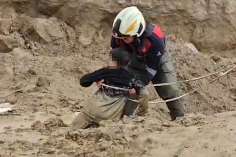 İzmir’de çamura saplanan çocukları itfaiye kurtardı
