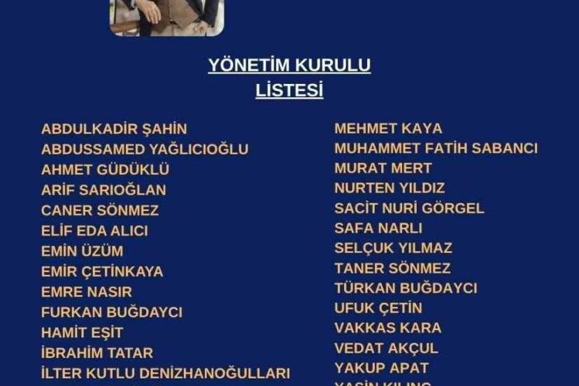 Konuşmasında yeni yönetim kurulunda yer alan isimleri de açıklayan Narlı, "DSİ Bölge Müdür Yardımcımız Abdulkadir Şahin, Foça Devlet Hastanesi Başhekimi Dr. Ahmet Güdüklü, Prof. Dr. Sacit Nuri Görgel, AK Parti Karşıyaka İlçe Başkanı Selahattin Köse, MHP İzmir İl Yöneticisi ve Ege Bölgesi Otobüsçüler Derneği Başkan Yardımcısı Taner Sönmez, İYİ Parti Gaziemir İlçe Başkanı Mehmet Kaya, Maden-İş Sendikası Ege Bölge Başkanı Vedat Akçul, Sağlık-Sen İl Başkan Vekili Vakkas Kara, TÜİK Bölge Müdürlüğü Yüksek İstatistikçisi Müslüm Mutlu, İzmir Vadeli İşlem Borsası kurucularından Emir Çetinkaya ve Makine Yüksek Mühendisi Mehmet Ali Günay ile birlikte; İzmir’imizin iş dünyasından ve farklı alanlardan kıymetli hemşehrilerimiz de yönetimimizde yer almıştır" ifadelerini kullandı.