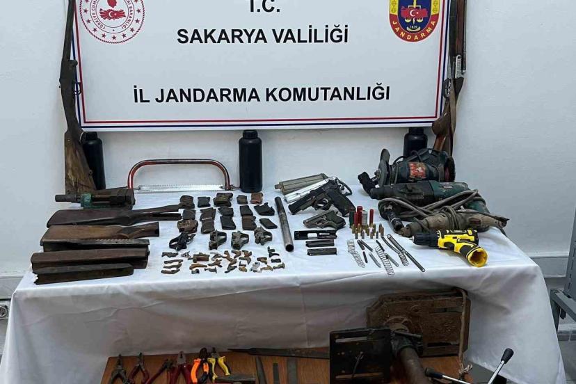 Sakarya İl Jandarma Komutanlığı ekiplerince kaçakçılıkla mücadele çerçevesinde yapılan operasyonda, Ferizli ilçesinde ikamet eden A.A.(68) isimli şahsın ev ve eklentilerinde yapılan aramada 4 adet ruhsatsız tabanca, 2 adet ruhsatsız av tüfeği, 3 adet tabanca şarjörü, 15 adet tabanca kabzası, 13 adet tabanca fişeği, 7 adet av tüfeği fişeği, 1 adet av tüfeği namlusu, 2 adet tezgah üstü mengene, 1 adet tezgah üstü matkap, 4 adet matkap, muhtelif sayıda tabanca ve tüfek tertibatı ile tamir, tadilat edevatı ele geçirildi.