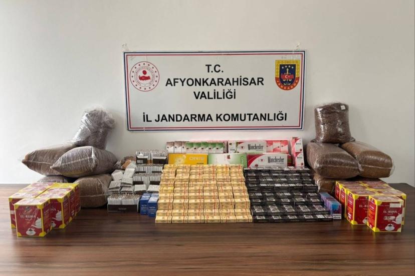 Afyonkarahisar’da Jandarma tarafından bir iş yerine yapılan baskında kaçak sigara ile tütün ve doldurulmuş makaron ele geçirildi.