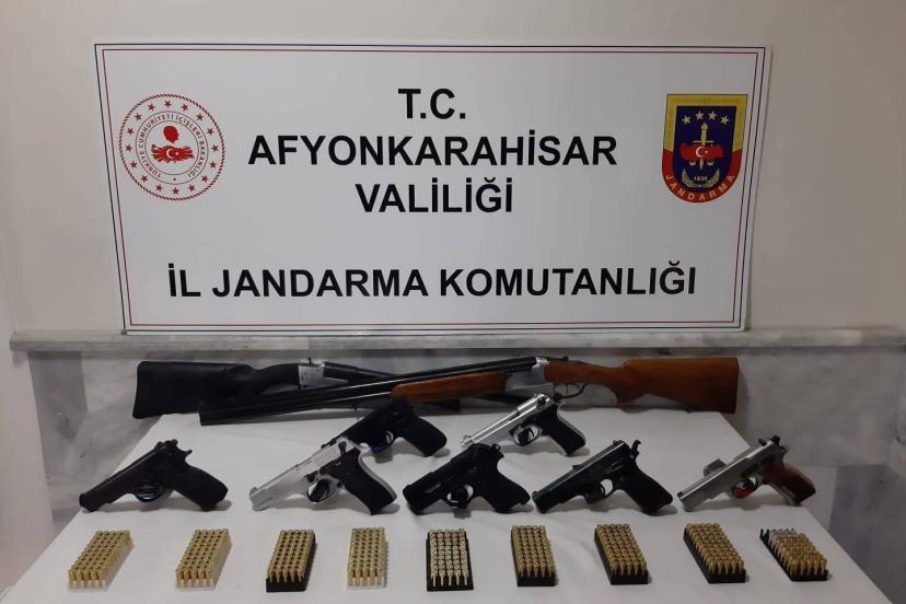 Edinilen bilgilere göre, Afyonkarahisar İl Jandarma komutanlığı’na bağlı ekipler tarafından alınan istihbarat üzerine çok sayıda adrese baskın düzenlendi. Baskınlarda yapılan aramalarda ruhsatsız 5 tabanca, 2 kurusıkı tabanca, 2 tüfek, bu silahlara ait şarjör ve 500’e yakın mermi ele geçirildi. Operasyon sonrası gözaltıların olduğu belirtildi.