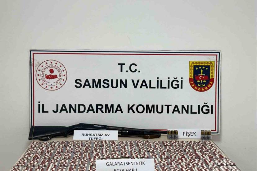 Edinilen bilgiye göre, Samsun İl Jandarma Komutanlığı ekipleri tarafından yürütülen araştırma sonucu 2 şahsın uyuşturucu madde bulundurduğu bilgisine ulaşıldı. Bunun üzerine ekipler, şüphelilerin ikametlerine eş zamanlı operasyon düzenledi. Yapılan aramalarda bin 500 adet sentetik ecza hap ve 1 adet ruhsatsız av tüfeği ele geçirildi.