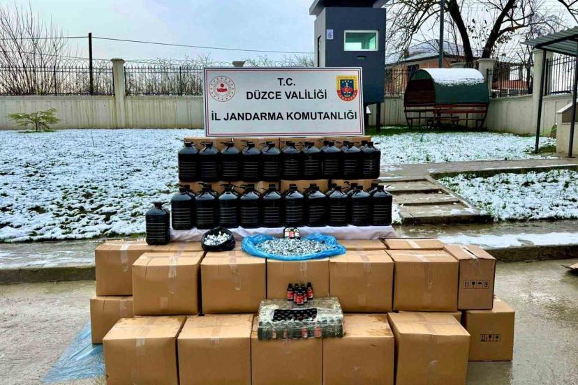 Düzce İl Jandarma Komutanlığı KOM Şubesi ekipleri, yeni yıl öncesi yaptıkları operasyonda piyasa değeri 2 milyon 500 bin lira olan kaçak alkol ele geçirdi.