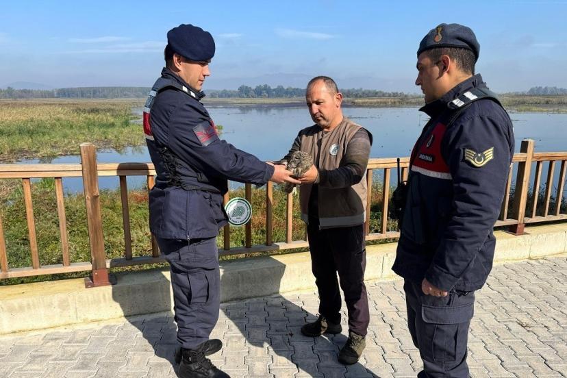 DÜZCE(İHA) – Düzce’de jandarma ekiplerinin devriye attığı sırada yaralı olarak bulunan baykuş ile kedi tedavilerinin yapılabilmesi için ilgili yerlere teslim edildi.