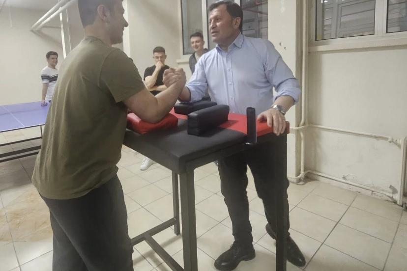 Kayseri Gençlik ve Spor İl Müdürü Ali İhsan Kabakcı; Erciyes Erkek Öğrenci Yurdu’nu ziyaret ederek öğrencilerle bir araya geldi. Kabakcı, öğrenciler ile bilek güreşi yaptı.