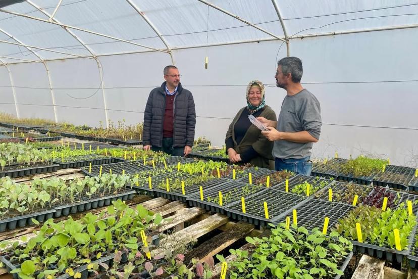 Kaymakam Özderin, örtü altı (sera) üreticiliği ve hobi bahçeciliğiyle uğraşan, aynı zamanda fide üretimi gerçekleştiren Gökhan-Aynur Erdınç ile Yetiş-Neşe Fidan çiftlerinin işletmelerinde incelemelerde bulundu. Ziyarette kadın üreticilerin çalışmaları ve yürüttükleri faaliyetler hakkında bilgi alan Özderin, kadın çiftçilerin emek ve özveriyle üretimin her alanında önemli bir rol üstlendiklerini belirtti.